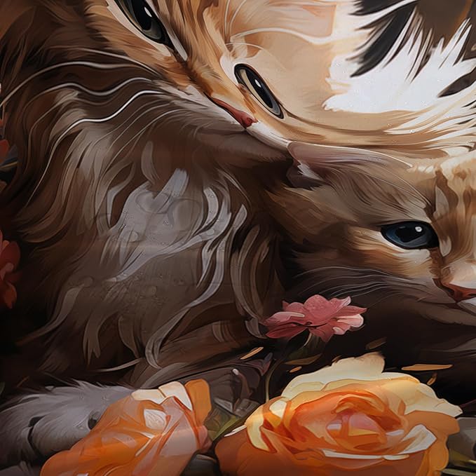 AILONEN 3D Kawaii Cat Shower Curtain,Lovely Kitten Mom and Son Polyester Cloth Bath Curtain Set for Girls Boys,Cute Animal with Flowers Waterproof Shower Curtains for Bathroom, 36" W*72" H