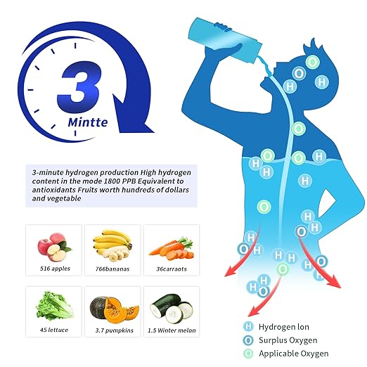 - HYDROGEN WELLNESS: Drinking electrolyte water, reduces oxidative stress, delays aging, strengthens the immune system, and boosts metabolism and nutrient absorption,improve sleep quality,making your life safer and healthier.Reducing the physical fatigue you may experience throughout the day, giving you more natural ATP energy.