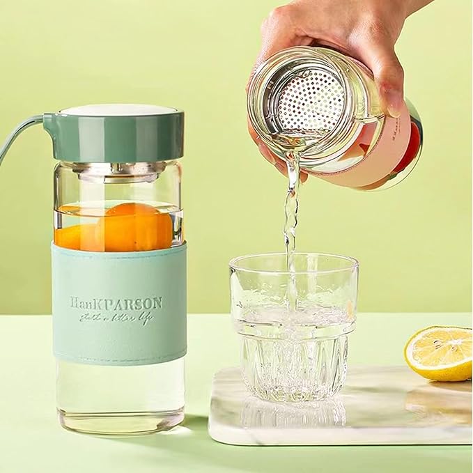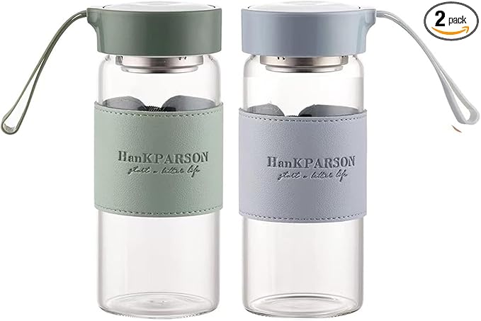 Glass Water Bottles 16 Oz Borosilicate water bottle-with sealing cap and Holsters and filters - BPA free,Men and Women Portable Glass Bottle (Blue+Green)