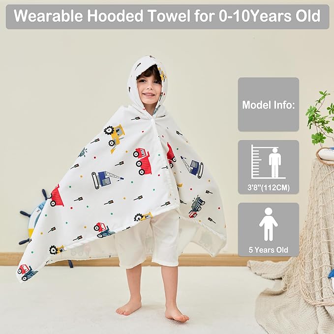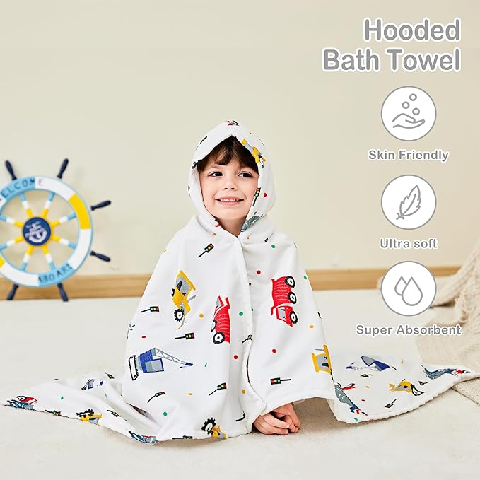 Kids Bath Hooded Towels, Kids Beach Towel for Boys Girls Super Soft and Absorbent, Beach | Pool | Bath | Swim Towels for Baby Kids Ages 0-8, 30X50 in, Truck