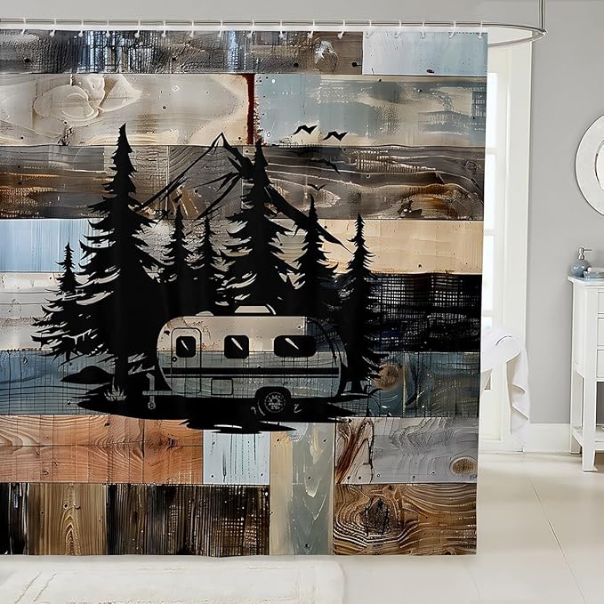 Feelyou Camper Bath Curtain Camping Bathroom Shower Curtain Set for Kids Toddler Boys Girls Happy Camping Shower Curtain Camping Car Kids Bathroom Accessories 72"x84"