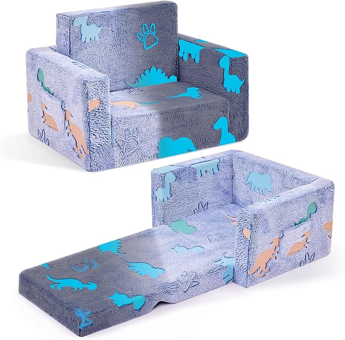 - 【Glow in the Dark】Our kids chair has a unique lighting design and features cute dinosaurs and other patterns. To witness the magical glow, simply place the children's couch in bright light or sunlight for 10 to 15 minutes. In the dark, it shines. This toddler couches that fold out is the ideal gift for birthdays, Christmas or baby showers. It is also a unique toy for children.