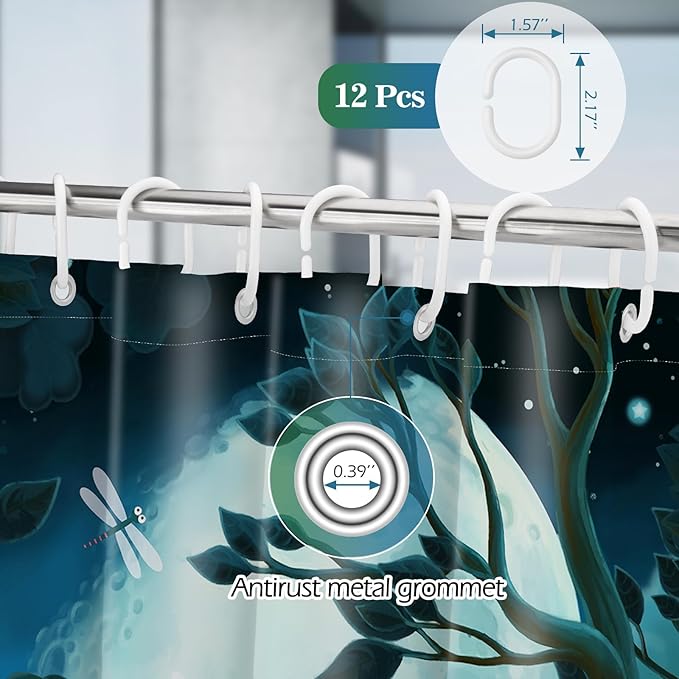 - Easy To Install: Top Grommet design, fit most bathroom shower hooks. Bathroom shower curtain is easy to install and can be quickly removed when you want to clean or replace the shower curtain. Funny shower curtain can be used in family bathroom,apartment bathroom,hotel bathroom,outdoor campers,bath tub,college dormitory shower, sports club shower, gym shower and ect
