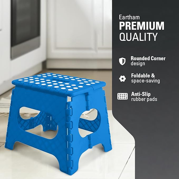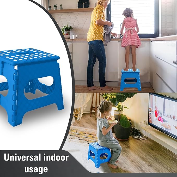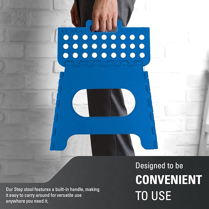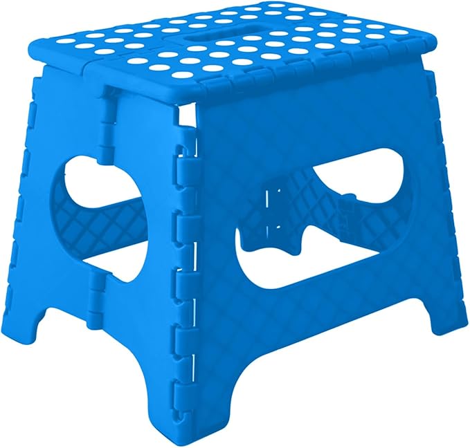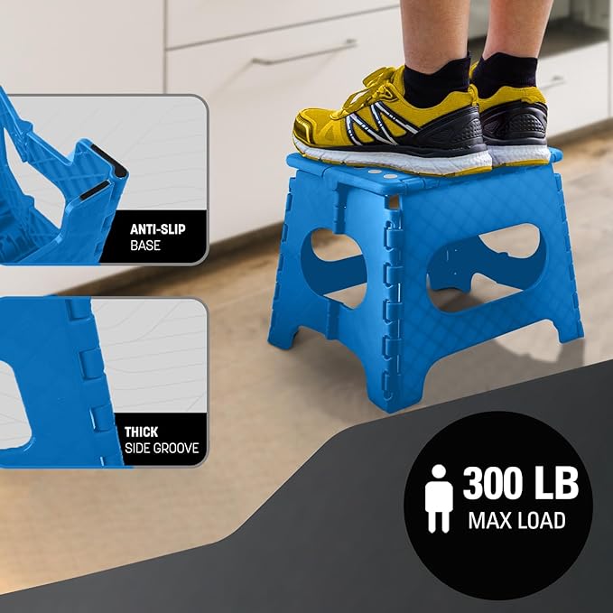 Lightweight 11" Folding Step Stool - Durable, Portable & Easy to Store - Anti-Skid Feet for Safety - Compact and Versatile - Max. Weight Capacity 300Lbs - Blue - Perfect for Adults and Kids