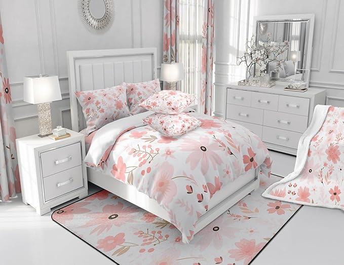 Feelyou Pink Flower Fabric Shower Curtain Floral Flower Shower Curtain for Boys Girls Flower Botanical Bathroom Waterproof Accessories with 12 Hooks Nature Plants Curtains,72x78 Inches