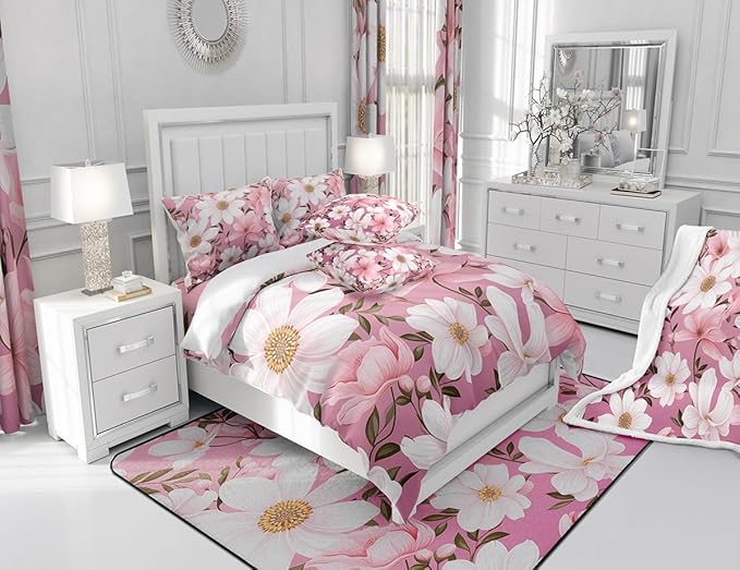 Feelyou Flower Fabric Shower Curtain for Kids Boys Girls Pink Floral Bathroom Waterproof Accessories with 12 Hooks Flower Botanical Shower Curtain Nature Plants Curtains,72x72 Inches