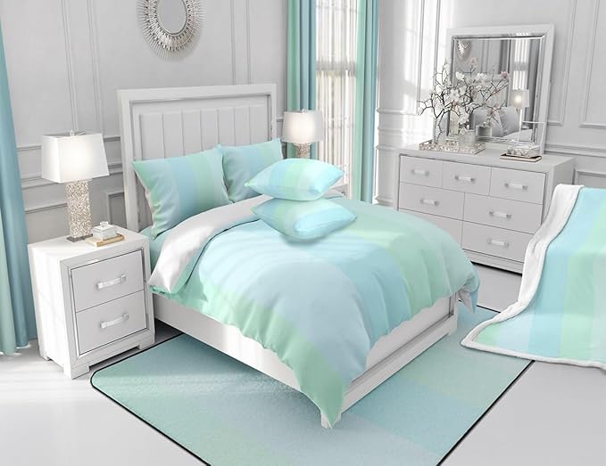 Feelyou Blue Green Stripe Shower Curtain Geometric Fabric Shower Curtain for Kids Simple Modern Bathroom Waterproof Accessories with 12 Hooks Women Men Fresh Style Curtains,72x84 Inches