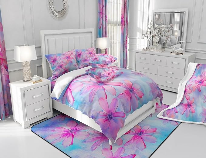 Feelyou Daisy Fabric Shower Curtain for Kids Boys Girls Pink Flower Bathroom Waterproof Accessories with 12 Hooks Floral Shower Curtain Wildflower Botanical Curtains,72x72 Inches