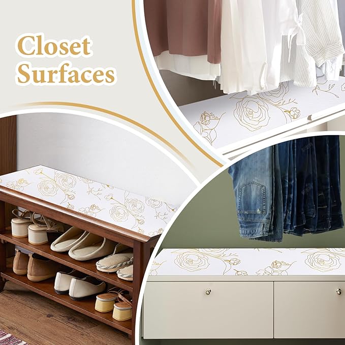 - 【Stylish Golden Pattern】 Stand out with our exclusive golden floral patterns. Designed by top fashion designers, these liners add a touch of elegance to any drawer or shelf. Perfect for both practical and aesthetic needs.