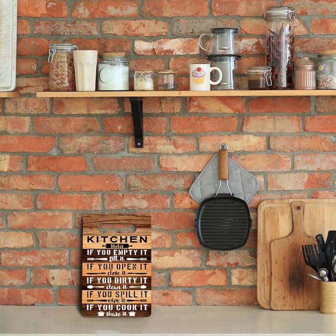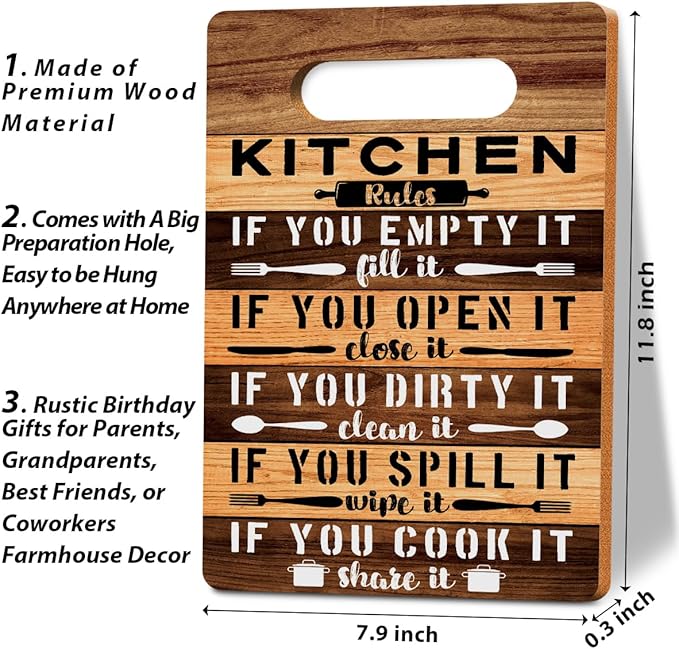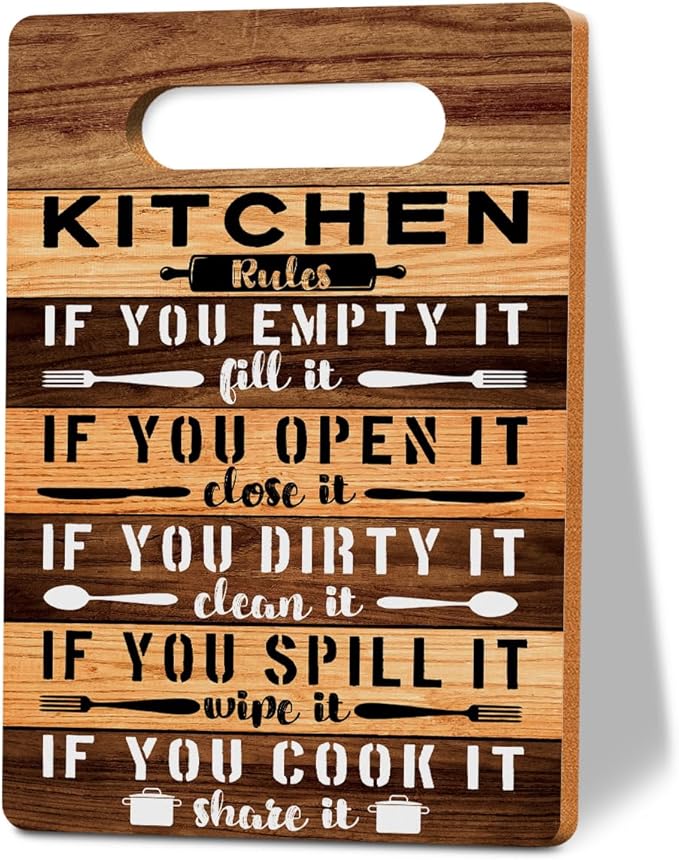 Kitchen Rules Cutting Board Gifts, Wood Cutting Boards for Kitchen, House Warming Gifts New Home, Kitchen Wall Art, Christmas Birthday Gifts for Women Mom Grandma 8 x 12 Inch