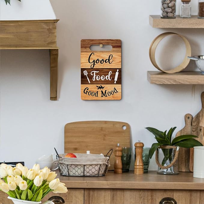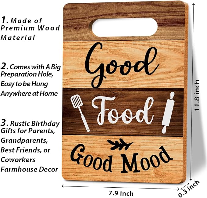 Good Food Good Mood Cutting Board Gifts, Wood Cutting Boards for Kitchen, House Warming Gifts New Home, Kitchen Wall Art, Christmas Birthday Gifts for Women Mom Grandma 8 x 12 Inch