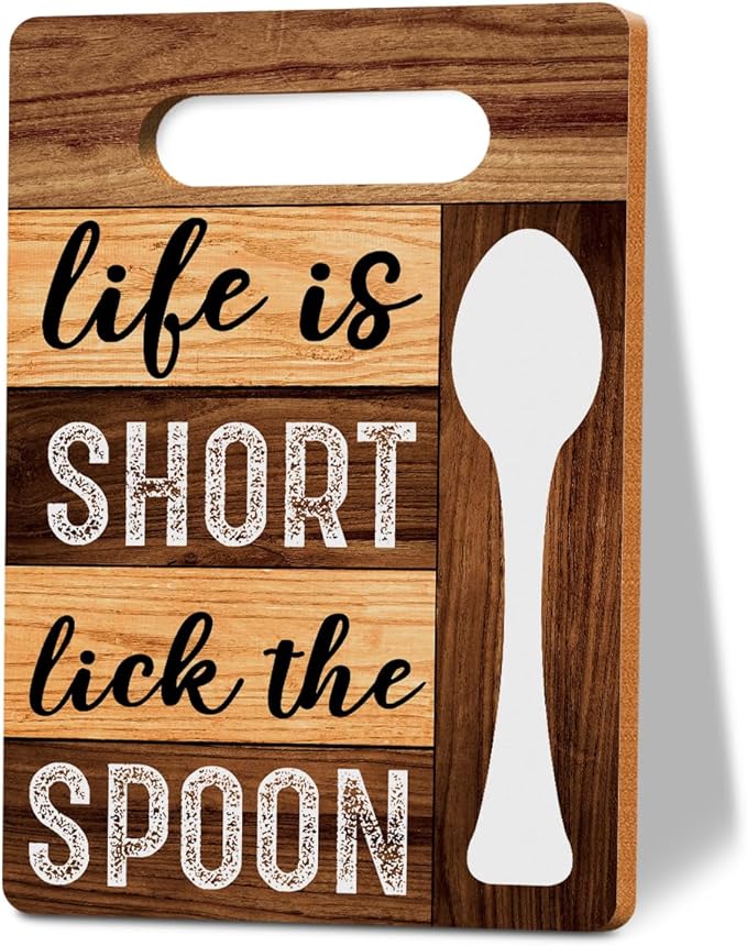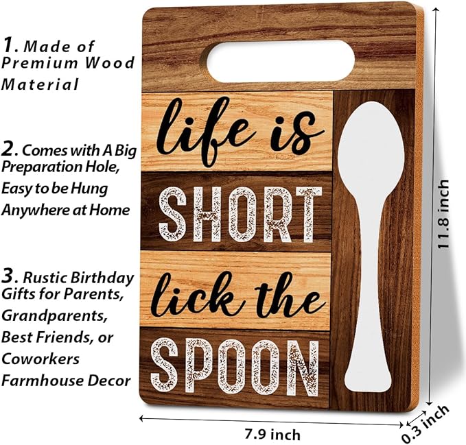 Life Is Short Lick the Spoon Cutting Board Gifts, Wood Cutting Boards for Kitchen, House Warming Gifts New Home, Kitchen Wall Art, Christmas Birthday Gifts for Women Mom Grandma 8 x 12 Inch