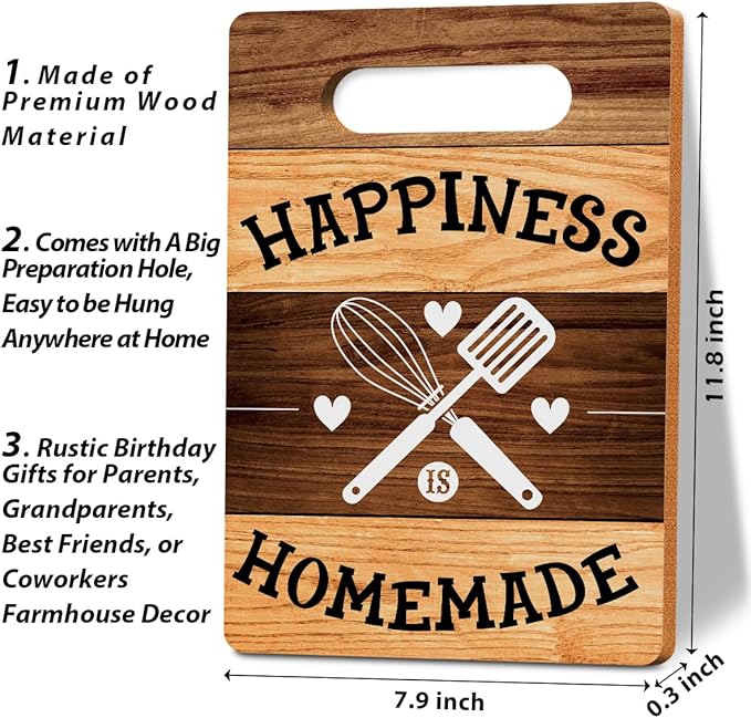 Happiness Is Homemade Cutting Board Gifts, Wood Cutting Boards for Kitchen, House Warming Gifts New Home, Kitchen Wall Art, Christmas Birthday Gifts for Women Mom Grandma 8 x 12 Inch