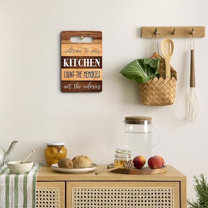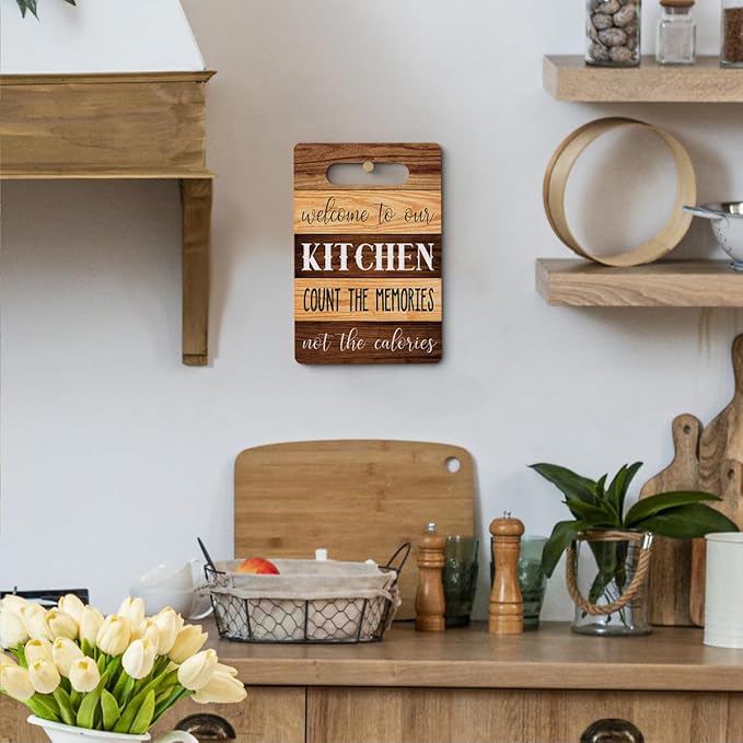 Welcome to Our Kitchen Wall Arts, Wood Cutting Boards for Kitchen, House Warming Gifts New Home, Kitchen Wall Art, Christmas Birthday Gifts for Women Mom Grandma 8 x 12 Inch