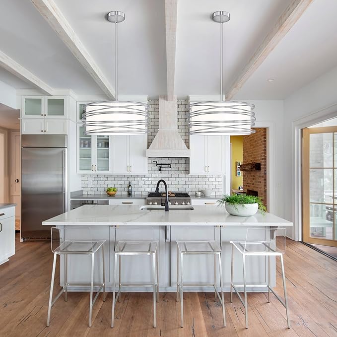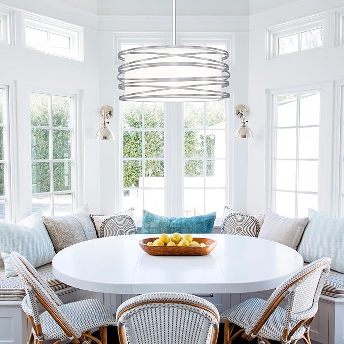 - 【Unique Design & Wide Application】Elegant silver and white double-layer drum chandelier is perfect to match the modern or retro home style. Perfect for dining room, living room, kitchen island, entryway, hallway, foyer, etc. other areas, adding more interest to your home!