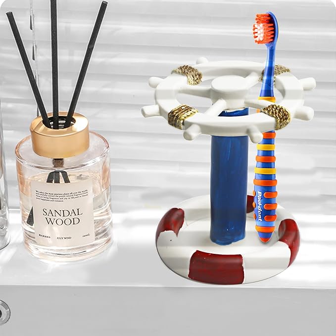 Toothbrush Holder Stand for Bathroom Vanity, Pen Storage for Desktop, Nautical Boat Ship Steering Wheel Decor