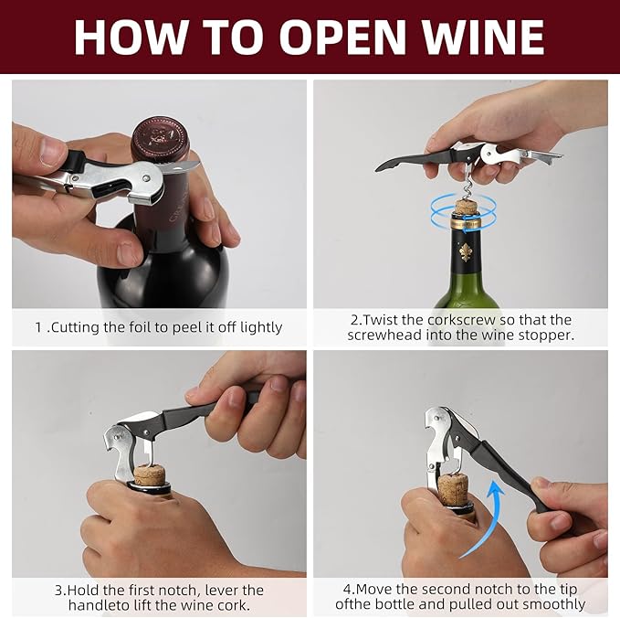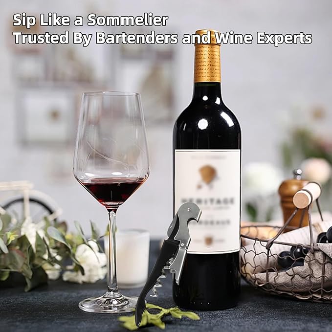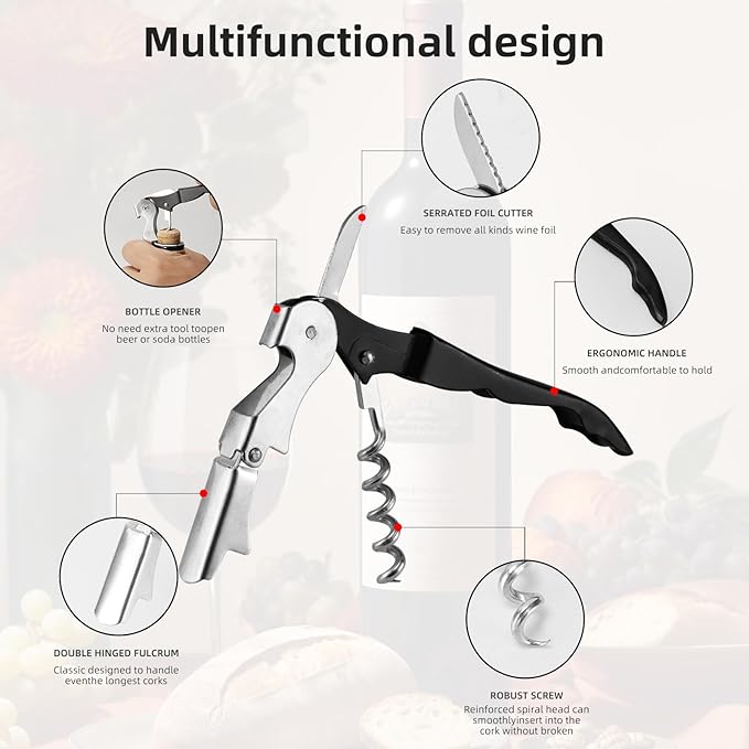 - 【Ergonomic design】 The smooth handle feels comfortable to hold, the double hinge provides additional lever operation, and the built-in foil knife combines to make this tool professional, convenient, elegant, and suitable for traveling, picnics, parties, and more.