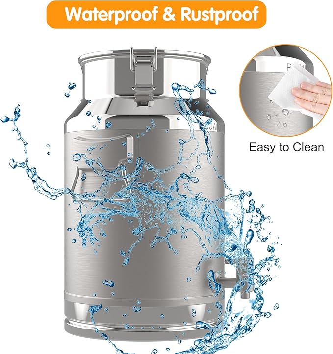 - Pojaikob 304 Stainless Steel Construction: Crafted from premium stainless steel, this milk can boasts exceptional corrosion resistance, ensuring it won't rust in any environment and can withstand high temperatures.