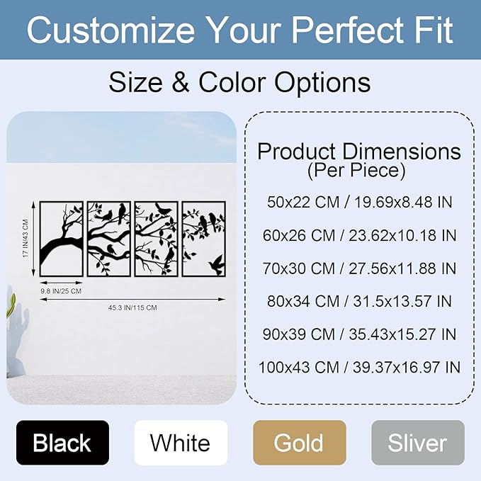 - Appropriate Size: You will receive 4 pieces of metal branch bird wall hangings in different styles, the Overall display size is about 39.2 x 17 inches /100 x 43 cm. You can choose the suitable size and hang it at home without taking up too much space. which is easily brighten up your wall and catch your guests' attention