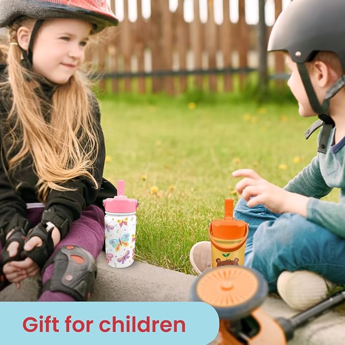 Kids Water Bottle with Straw Lid - 12 Oz Insulated Stainless Steel Water Bottles for Toddlers Kid Girl- Travel Cup for School Sports