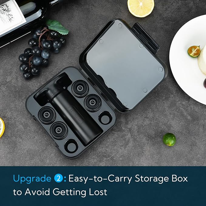 - ✔【Convenient Storage】Our wine saver pump set comes with a high-quality storage box, allowing you to easily store the pump and stoppers together. This wine saver pump set makes an ideal gift for any wine lover in your life.