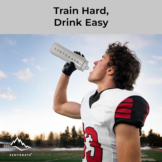 - DURABLE AND SAFE: The 32-ounce BPA-free sports water bottle is crafted from durable polyethylene that's easy to squeeze. This Ezhydrate water bottle equipment ensures safe hydration without harmful chemicals. Perfect for athletes, it fits most bike cages and is designed for rigorous use, making it a reliable Ezhydrate squeeze water bottle for any activity.