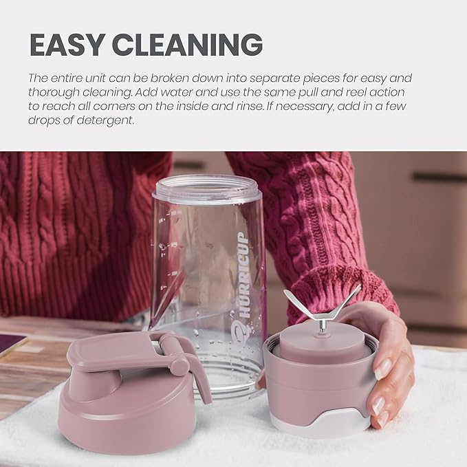 - ✔️Ultra-Hygienic & Easy to Clean: The Hurricup protein shake blender can be disassembled for thorough cleaning. Just add water, pull and reel to rinse all corners. Can include detergent if required.