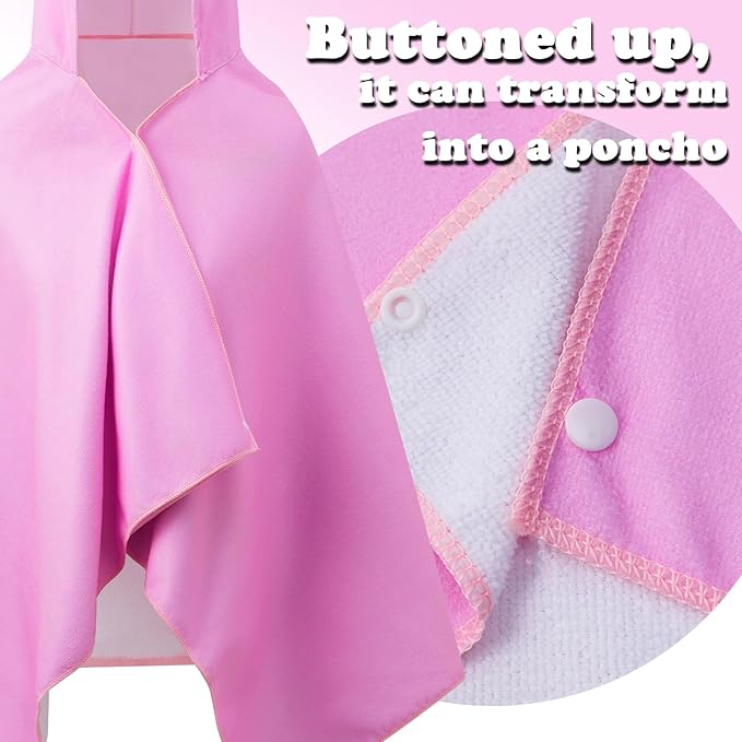 - Versatile Use: Great for swim lessons, beach outings, or as a versatile companion for your child’s adventures. It can also easily transform into a poncho towel with two buttons, offering dual functionality.