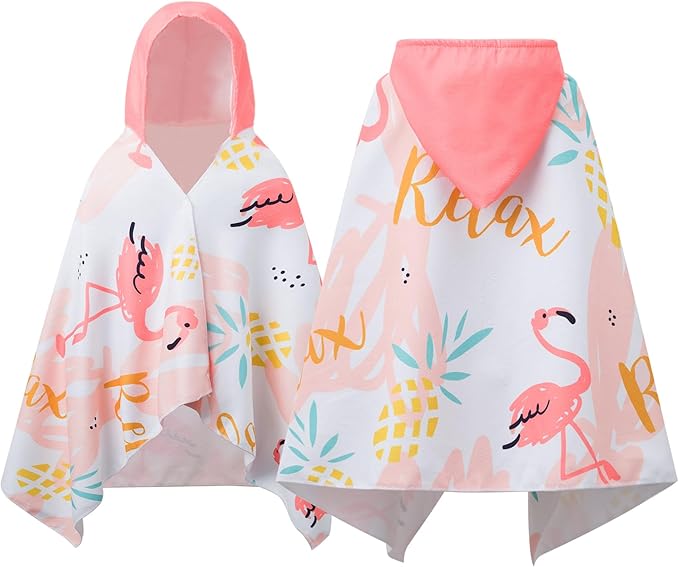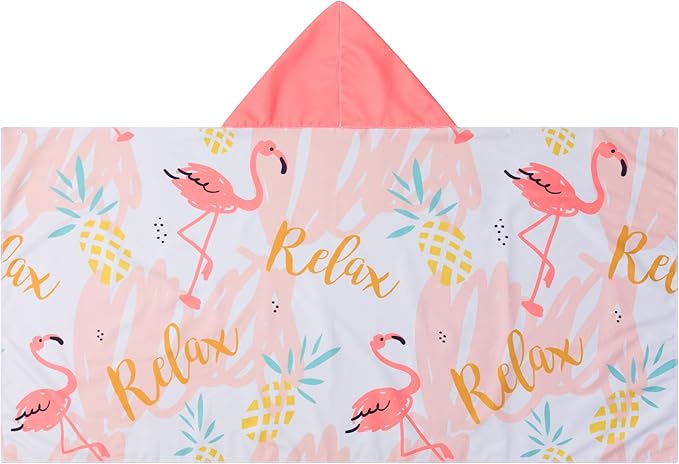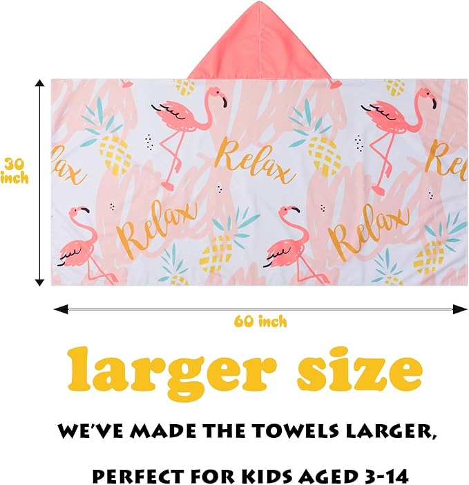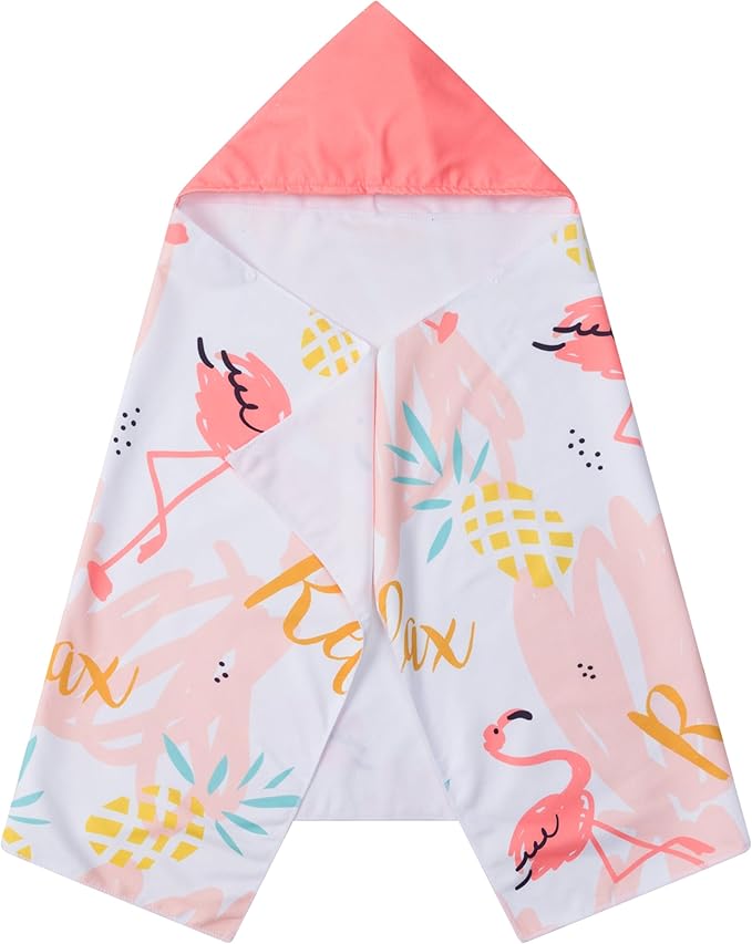 Kids Hooded Towels - Soft and Absorbent Bath, Beach, Swim Pool 30" x 60" Large Towel Cover Up for Boys and Girls Flamingo