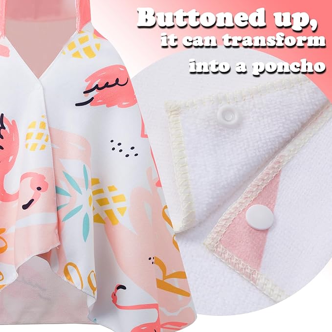 - Versatile Use: Great for swim lessons, beach outings, or as a versatile companion for your child’s adventures. It can also easily transform into a poncho towel with two buttons, offering dual functionality.