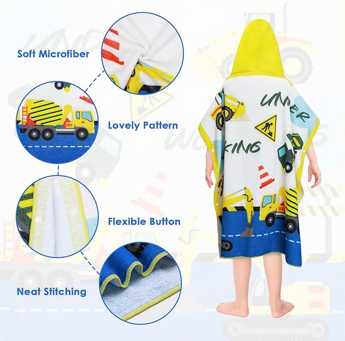 - Convenient Size & Hood Design: At approximately 30" x 30", the towels are a great size for small 3-10 year kids while still being large enough to wrap around completely.The hooded towel wrap design makes this towel easy to wear, providing freedom of movement for beach, pool, or bath time.