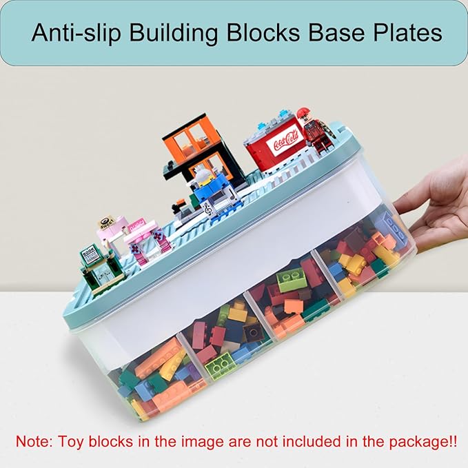 - Innovative & Unique Toys Organizer Bins - The plastic toy storage box is separated into various compartments to organize and sort small gadgets like kids building blocks. The building plate lid allows your child create wonderful building blocks structures. Say goodbye to messy playrooms with our storage organizer! Note: Building Blocks not Included!