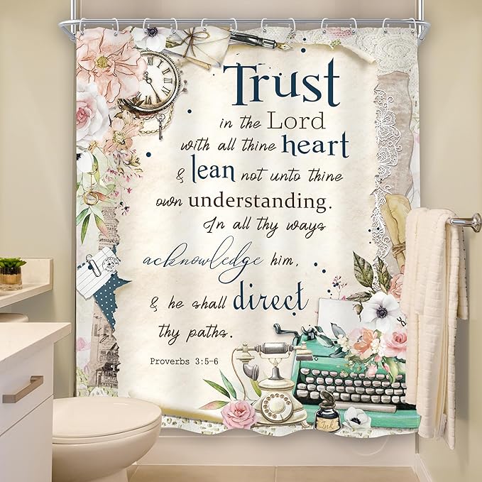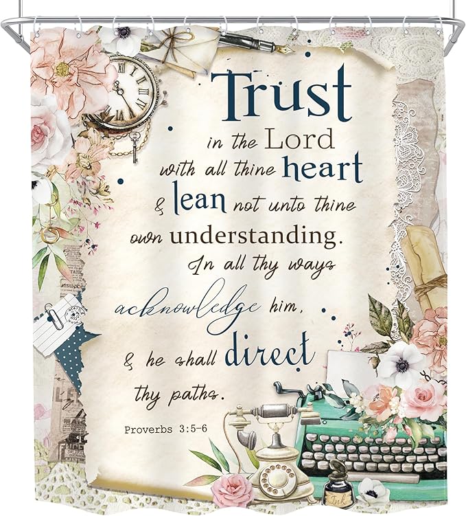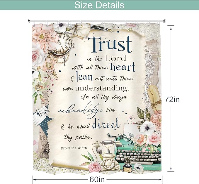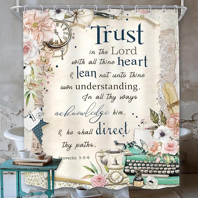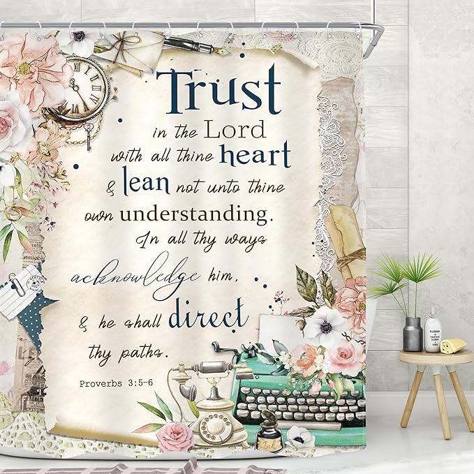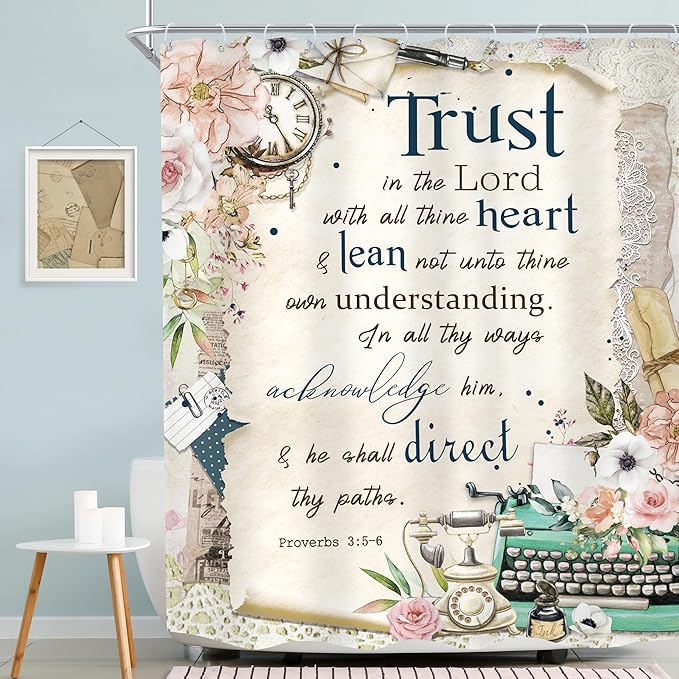 MESHELLY Vintage Christian Shower Curtain 60Wx72H Retro Floral Bible Verse Rustic Farmhouse Pink Flower Quotes Bathroom Curtain Scriptures Bath Curtain Fabric Bathroom Accessories Decor with 12 Hooks
