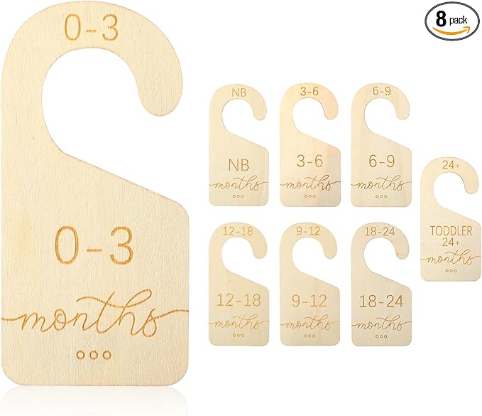 - 【Set List】You will receive 8 pieces of baby clothes dividers with the appropriate size of 18x8.6cm / 7.08x3.38 inches. Using these Wood baby wardrobe dividers, it is very easy to keep your child's wardrobe clean, with clear marks, so that you can easily find your child's clothes