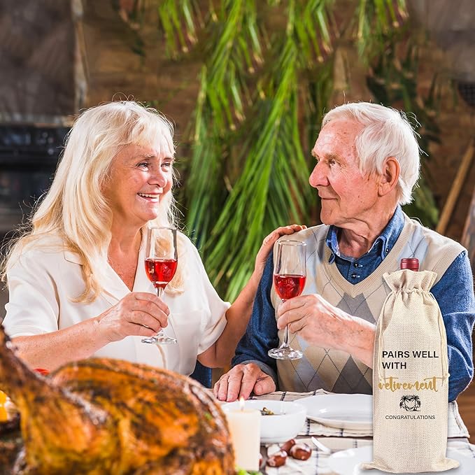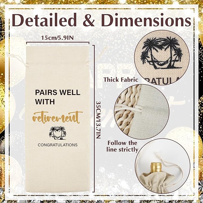 - 【Retirement Wine Bag Quality】Our retirement wine bags are made of natural linen material, which can avoid bacterial growth, and are printed with advanced technology so that text and patterns are visible. Tested by a professional team, it is easy to clean, reusable, and environmentally friendly.