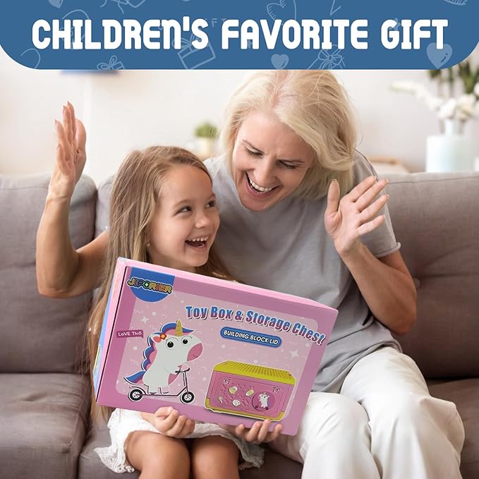 - [Creative Design] Different styles use original unicorn or dinosaur patterns, cute and beautifully placed in the home. Our double-door style has two small spaces on top for sorting a pile of toys, building-block style allows you to build blocks on top, it is compatible with 9mm Large Classic Building Bricks, allowing your child to unleash their imagination.