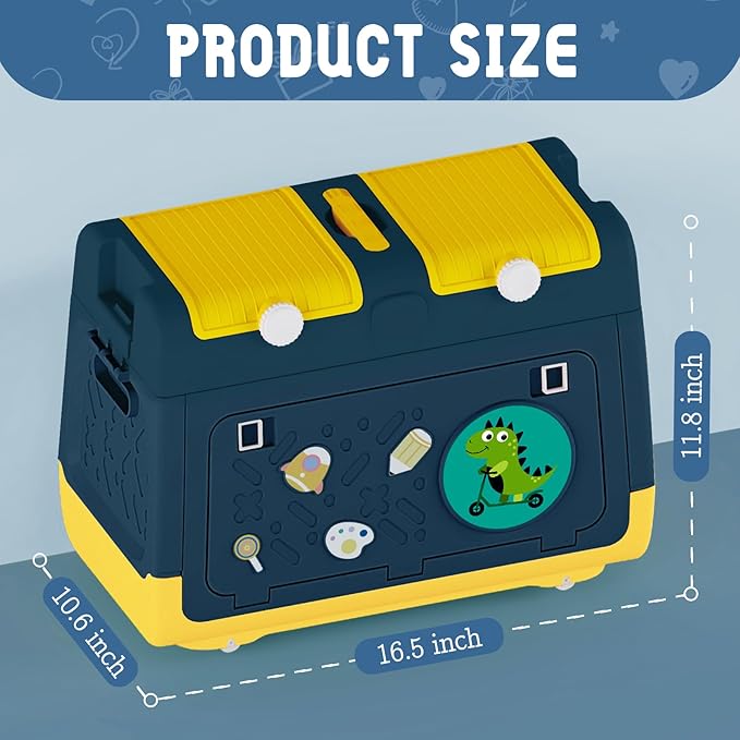 - [Sturdy Portable] Our toy chest is made from sturdy PP plastic. that's durable, shatterproof, non-toxic and odourless, harmless to environment and safe for children. The lid has handles on the top or sides and wheels at the bottom, making it easy for children to take toys anywhere.