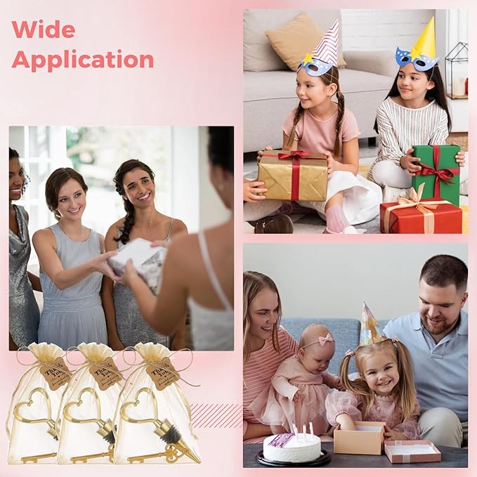 - 【Practical Accessories for DIY】With delicate tags, gold organza bags, and ropes included, this set offers a canvas for DIY customization, allowing for a personal touch to be added to each favor. You can unleash your creativity to craft personalized gifts that captivate the guests.