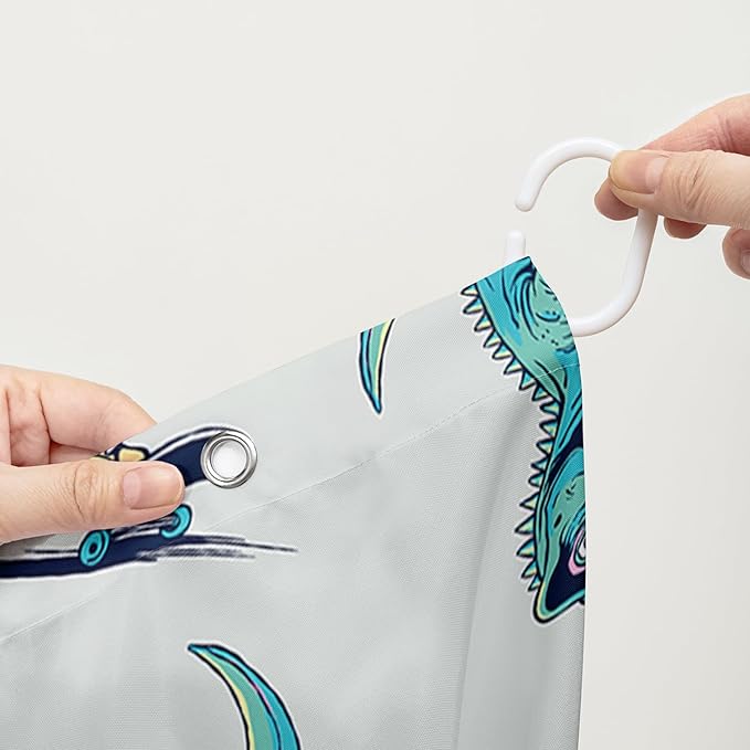 AILONEN Cute Dinosaur Kids Shower Curtain,Sport Cool Dinosaur Bath Curtain Gifts for Boys Teens,Skate Dinosaur Polyester Waterproof for Bathroom with 12 Plastic Hooks 60" W*72" H