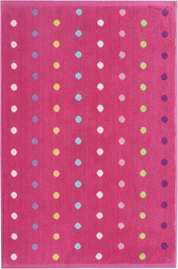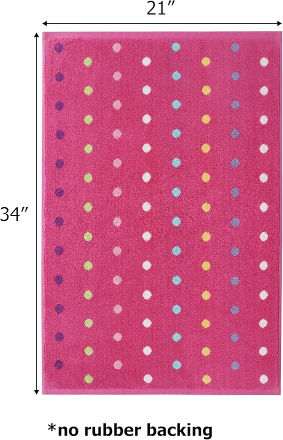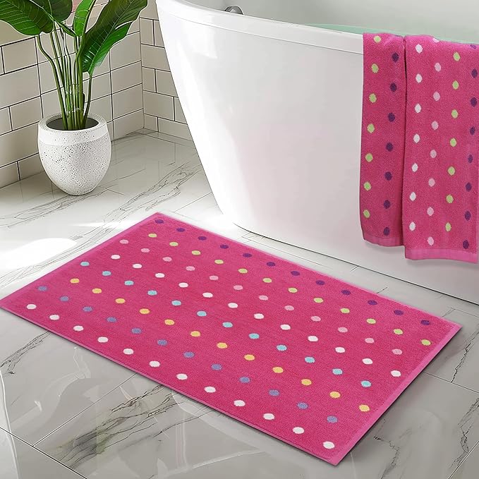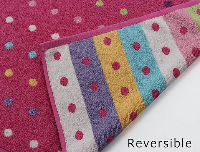 - Functional & Reversible Bath Mat: Not only functional but also adorable, your little one will love this colorful multi-color polka dots and candy stripe design towel rug. In adorable pink and white base colors, these tub mats are adorned with cute multicolor dots on a pink base on one side, perfectly complemented by a reversible design featuring multicolor stripes on a white base on the other side. Your kids will enjoy the variety and fun this towel bathroom rug will bring to their bath time.