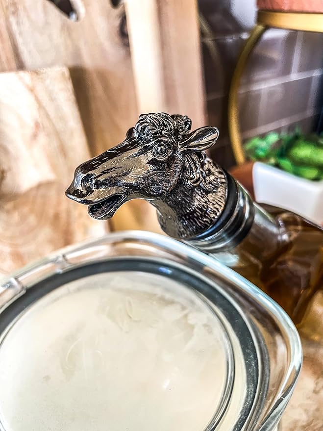 - WINE, LIQUOR, & KITCHEN OILS - A great areator stopper and pourrer for a variety of bottles that include any type of alcohol, Whiskey, vodka, gin, and tequila bottles are a great fit. Don't forget the elegance added to cooking oil bottles such as avacado, olive, and other kitchen liquids. Great for horse lover gift.