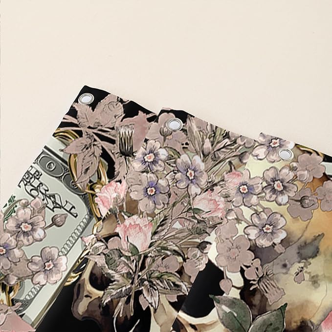 AILONEN Sugar Skull Shower Curtain for Bathroom,Romantic Rose Flower Bath Curtain for Girls Women,Money Skull Skeleton Print Waterproof Curtain with 12 Plastic Hooks, 36" W*72" H