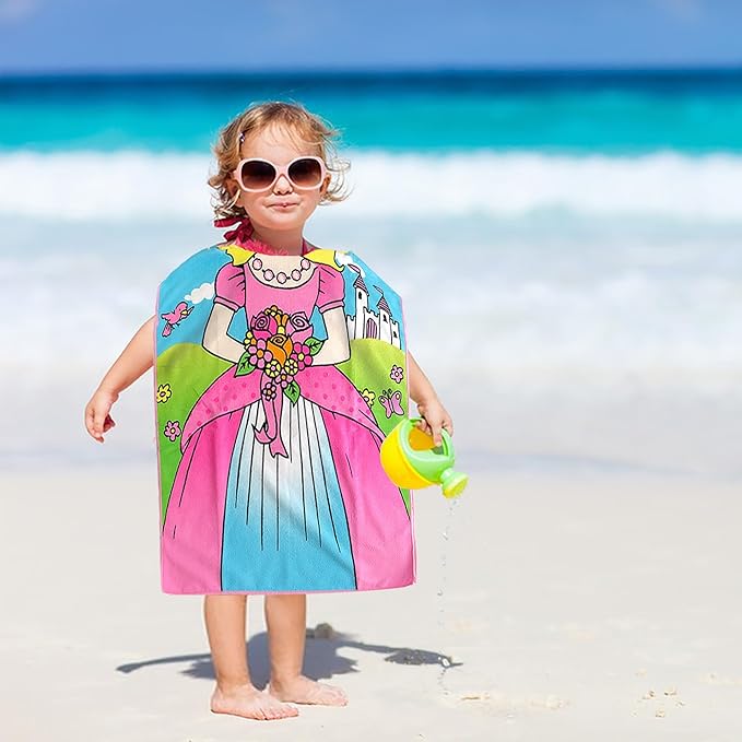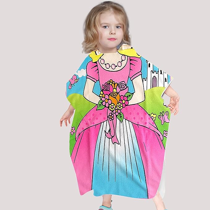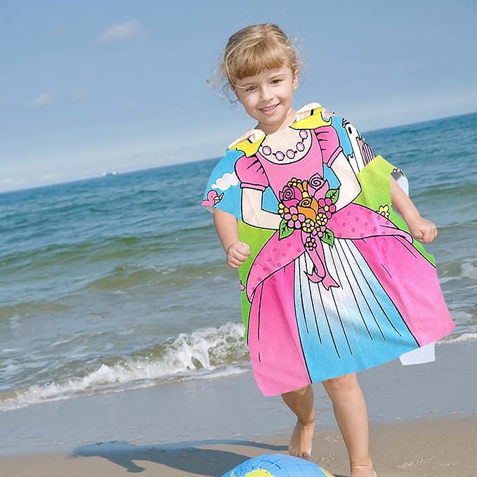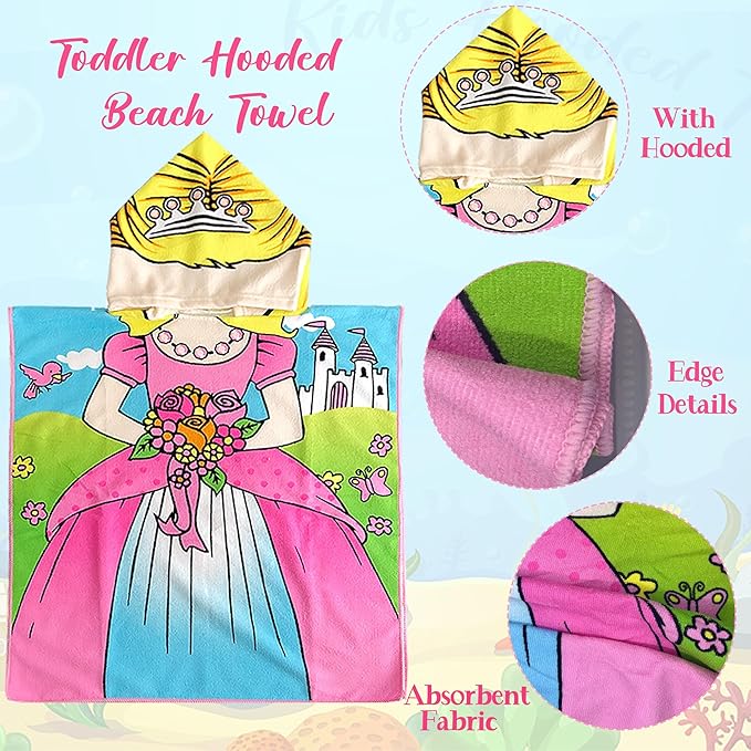 - LOVELY DESIGN: With a lovely princess design, our kids hooded beach pool towel for girls is very attractive when you use it at beach or swimming pool. classical designs just as ths foto shows, both kids and parents will love it