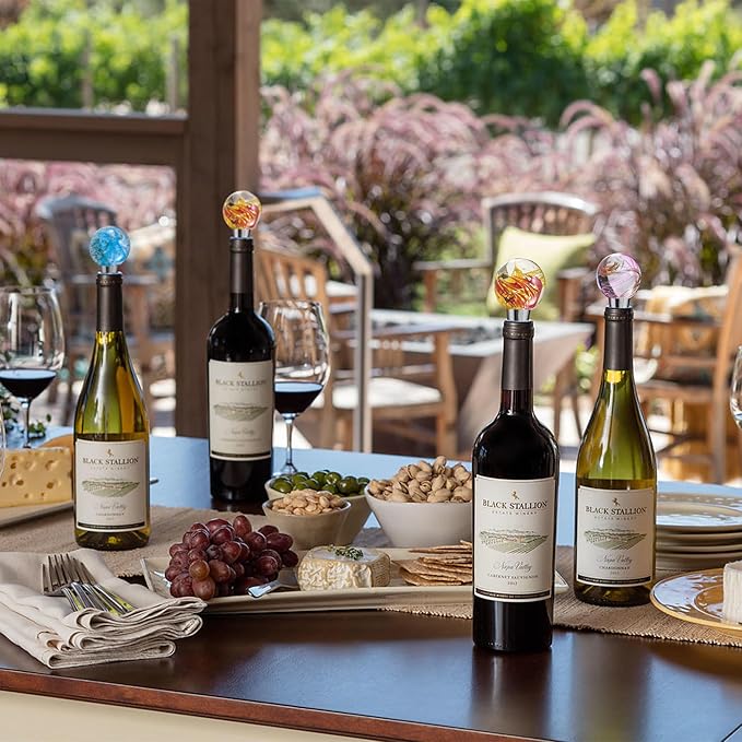 2PCS Hand Blown Glass Wine Stopper Bottle Stopper - Wine Saver, Reusable Wine Corks for Beverage, Stainless Steel Wine Stopper