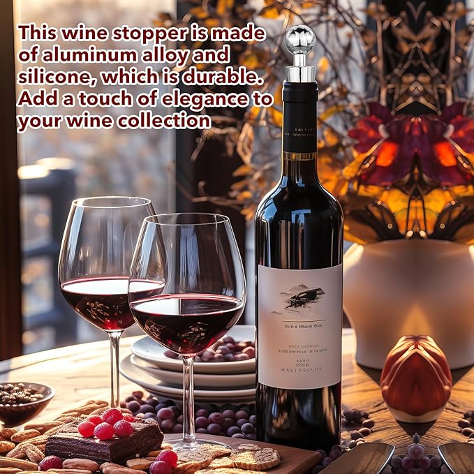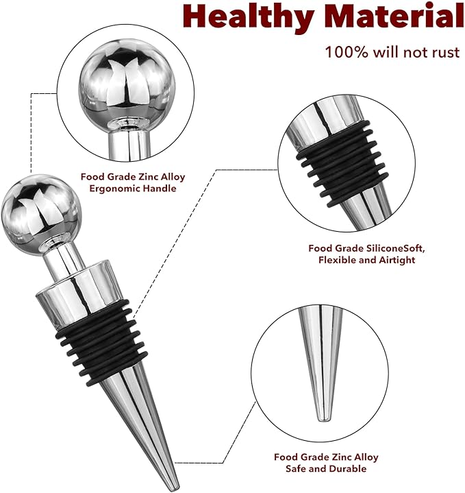 - High-quality material: Our red wine bottle stoppers are made of solid aluminum alloy and food-grade silicone material, which is safe, healthy, durable and will not deform due to moisture. The wine stopper is 100% sealed and leak-proof, which can maintain the freshness, flavor and aroma of the wine, allowing you to enjoy the full experience of each bottle of wine over time