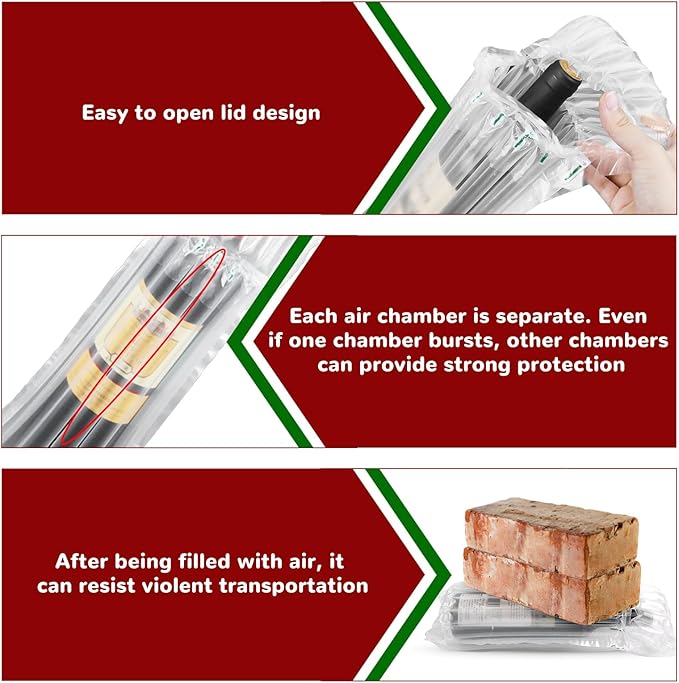 - Easy Inflation: Simply locate the green arrow on the protector, insert the inflation pump, and inflate wine bottle protector bags for secure, hassle-free protection.Tips:This package does not include pump, you will need to purchase a separate pump to use them.
