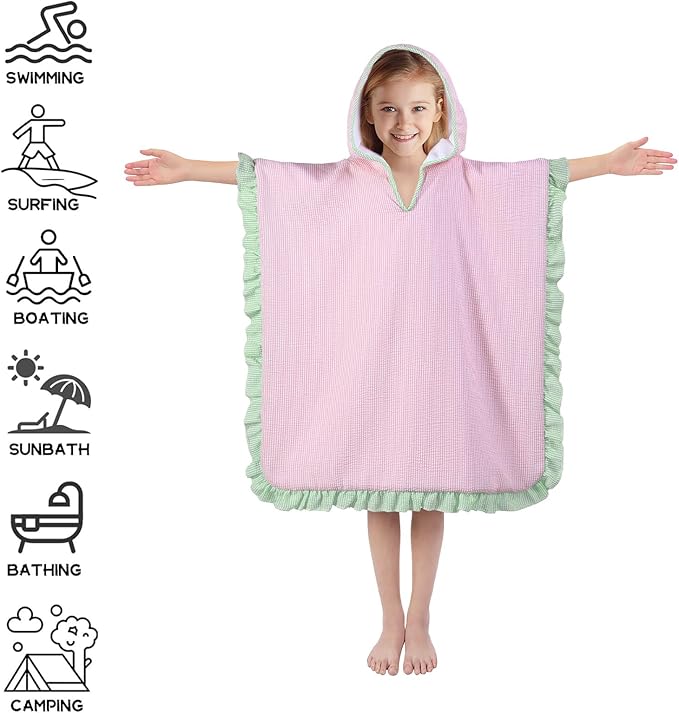 - 【Cute Giftable】:Our kids poncho towels are so cute and versatile.It is designed for boys and girls, with ruffle for girls and without ruffle for boys.This is a fun towel and very giftable.