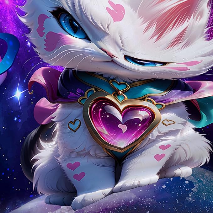AILONEN Cartoon Cat Shower Curtain Set for Kids Boys Girls, Kawaii Love Kitten Shower Curtain for Bathroom,Galaxy Planet Washable Fabric Shower Curtain with Hooks,72" W*84" H