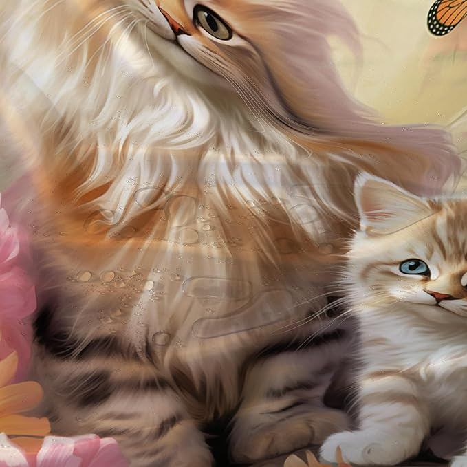 AILONEN Cartoon Kawaii Cat Shower Curtain for Kids Girls, 3D Cat Mum and Son with Flower Shower Curtain for Bathroom Decor,Cat Lovers Animal Waterproof Shower Curtains Sets with Hooks,48" W*72" H