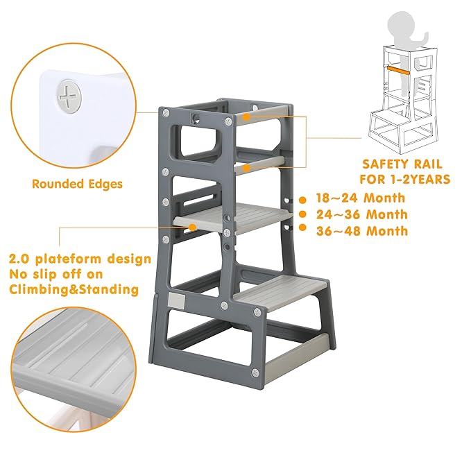 - Grow-Up Design: The step stool features a grow-up design suitable for children aged 18 months to 3 years. The adjustable platform supports up to 200 pounds, ensuring it remains a reliable companion as children grow and gain independence.